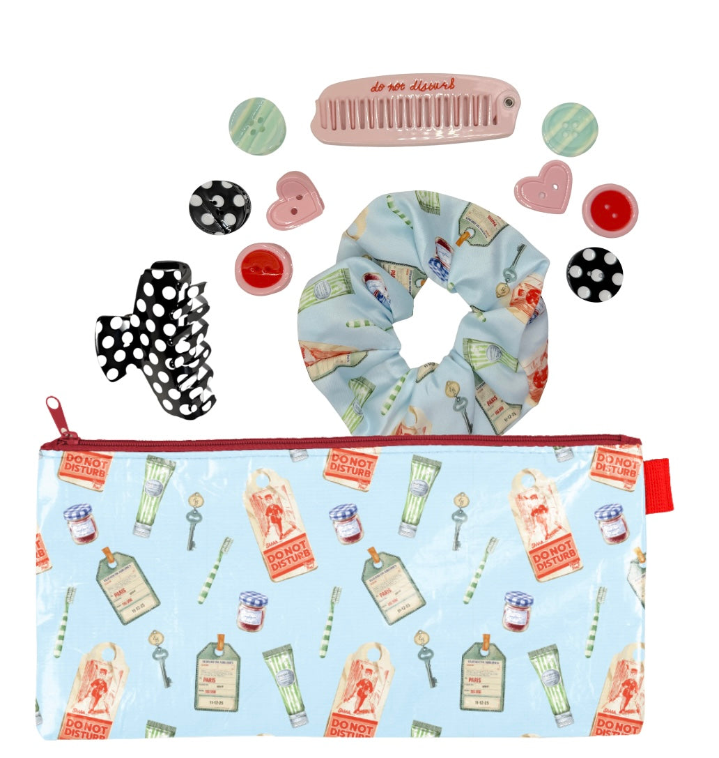 Consider this your checked-bag cheat code. The HR x EB Amenities Kit is your carry-on companion, glovebox essential, and overnight MVP all packed in a custom printed pouch made from recycled plastic bottles. Inside, you’ll find the full suite of hair and travel accessories from our Elizabeth Bay x Hey Ricochet collab, made to make getting ready on the go actually fun.